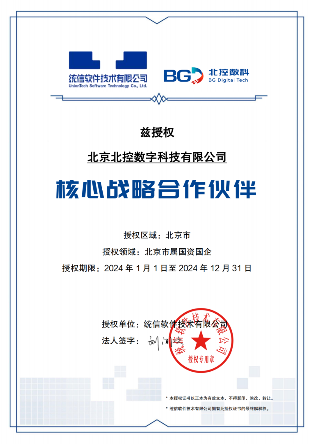 北控数科和统信软件作为在京专注于科技自立自强的典型代表,此次强强联合将有助于“信创十条”等有关政策的贯彻落实,形成行业示范标杆;有助于打造坚实可靠的数字化底座,加速市管企业数字化转型和信创工作进程;有助于创新企业间联合攻关、协同创新、合作共赢新模式,通过突破“新技术”、推出“好产品”、赋能“新领域”、营造“优服务”,持续为行业助力、为产业赋能。