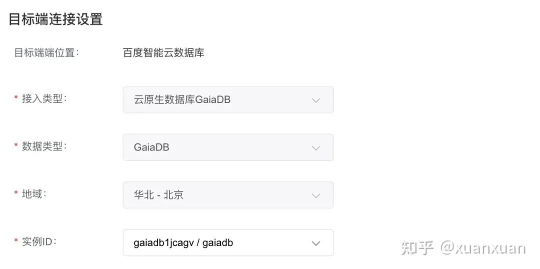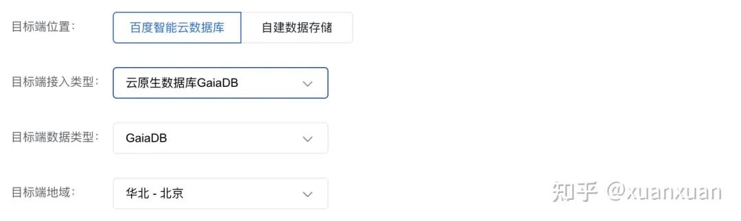 目标端接入类型可直接选择云原生数据库 GaiaDB: