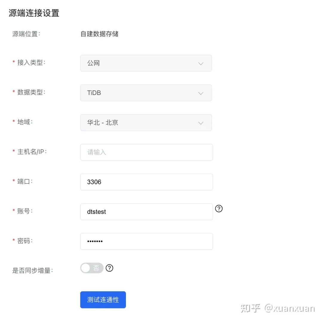 源端连接信息配置: