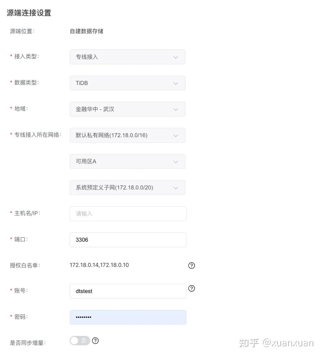 授权白名单:在源数据库的网络白名单中加入授权白名单 IP,确保源端可与该 IP 连通。