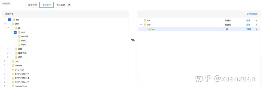 传输对象:DTS 支持三种配置传输对象方式。