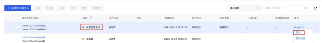 预检查通过后,您可直接启动数据迁移任务。