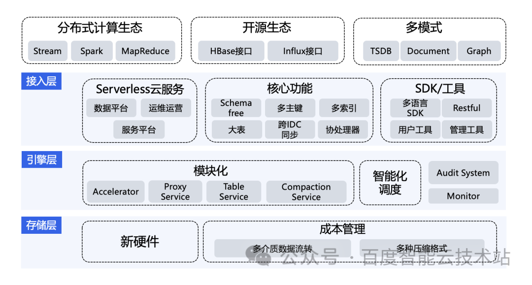 BTS 是百度智能云的半结构化存储产品,对内支撑百度核心业务(搜索、Apollo、凤巢、feed、系统监控等),对外提供高性能、低成本的 NoSQL 表格存储服务。