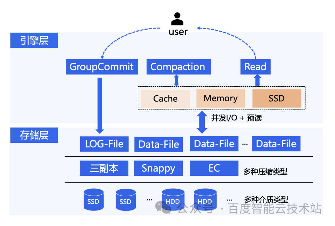 我们首先看下如何实现 NoSQL 数据库中最关键的性能和成本。- 通过 GroupCommit 将小块写合并处理,从而大幅度提升写吞吐。这在 HDD 介质上有明显的提升效果。