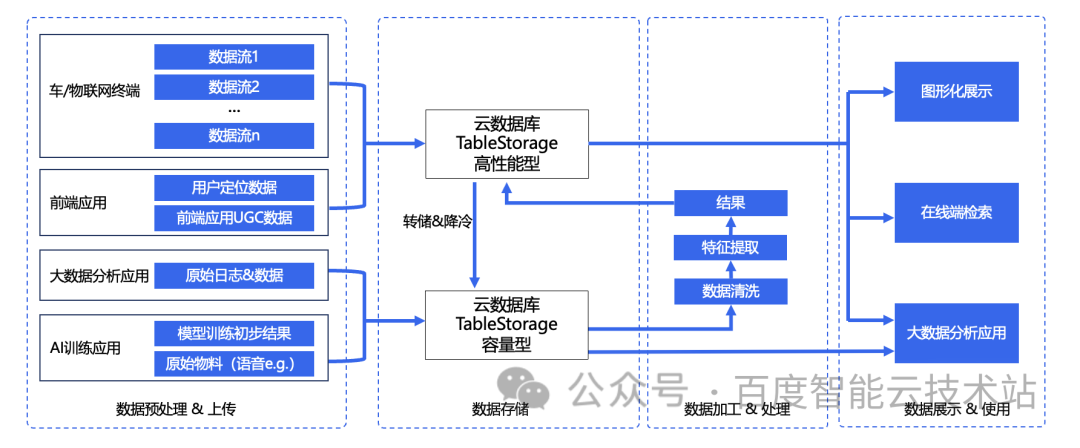 监控业务最大的痛点是离线流量和在线流量混合。离线流量需要分析全量数据,然后输出业务报表,对系统消耗很高。在线流量主要是实时监控、实时报警,要求数据能实时处理,不能阻塞。BTS 通过支持在离线分级管理的方式,用不同的访问标识区分在离线任务。离线任务会切成很小块,一个小块占用不多的时间,让高优在线任务能够随时插入进来。在线流量低时,离线流量可以充分把资源利用起来,当在线流量起来后,离线又能够快速让出资源,不阻塞在线任务。另外一点是监控对成本要求高的同时,对性能的要求也很高。所以利用监控业务读取最新数据的特征,通过多种缓存策略,让热数据尽量保持在高速缓存以保证高性能,冷数据放在 HDD 上,从而实现了成本的降低。通过这些整体方案,已经可以实现缓存命中率超过 80%,在兼顾成本的同时又具备高性能。通过以上方案,在百度集团内部的系统监控场景下,最终达到了业务成本下降 50% 以上、可支持每天十万亿级监控点采集、离线流量对在线流量 0 影响,实现监控 0 丢点率的效果。目前 BTS 在支持了宽表和时序的基础上,将进一步发展支持文档、搜索的多模能力,给客户提供跨模态统一分析和计算的能力,即支持客户通过一个任务即可统一分析多个模态数据。前面介绍了关键产品 BTS,最后简单回顾一下百度智能云产品矩阵。百度智能云数据库包括 RDS、NoSQL、云原生数据库,OLAP 等产品。相比业界其他云厂商,百度智能云数据库有两个显著特点:- 百度智能云数据库可以做到一套架构,云上云下客户享受同等的产品能力。
