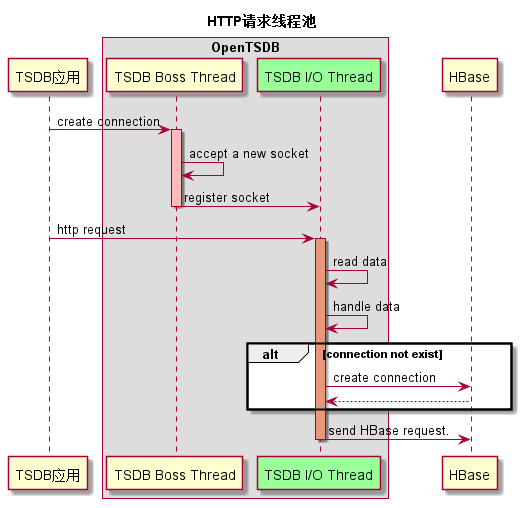 1. 每个HBase与OpenTSDB之间的Socket连接,在OpenTSDB向HBase发起请求的时候就已经建立了。 也会把该Socket绑定到AsyncHBase I/O Threads线程池的一个线程中。