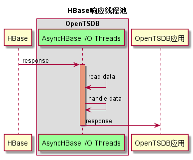 3. AsyncHBase I/O Thread 处理HBase的响应消息。而后,发送HTTP响应消息到OpenTSDB应用端。