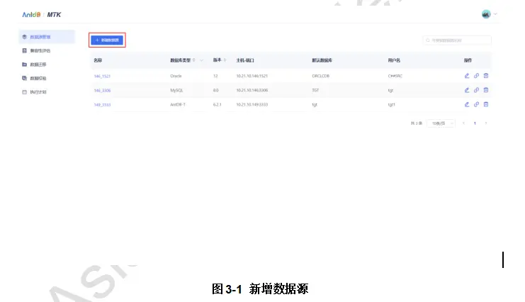 配置数据源连接,以供评估、迁移、校验等工具使用。