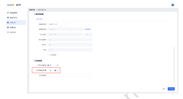 在基本信息页面,仅勾选“迁移全量数据”,其余步骤参考3.4.1.1 。
