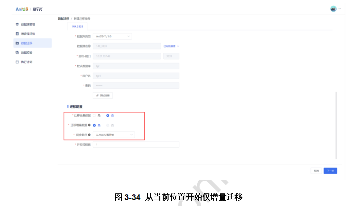 同步起点选择“从当前位置开始”,AntDB-MTK会从数据库当前最新的数据进行迁移。
