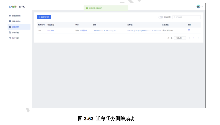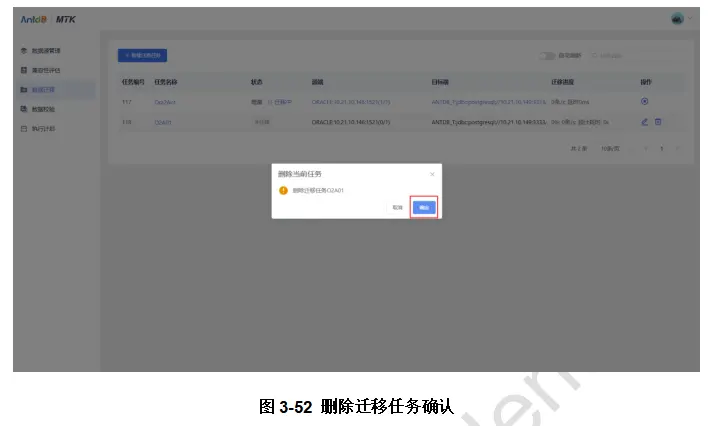 在数据迁移任务列表页,选择需要删除的迁移任务,点击“删除”按钮: