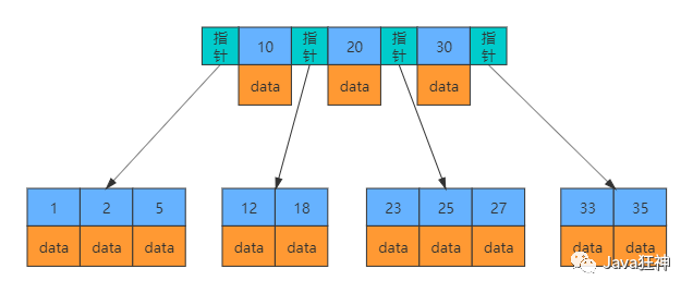 树内的每个节点都存储数据 叶子节点之间无指针连接