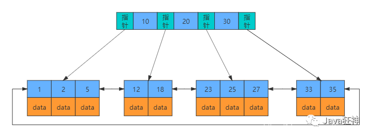 数据只出现在叶子节点 所有叶子节点增加了一个链指针