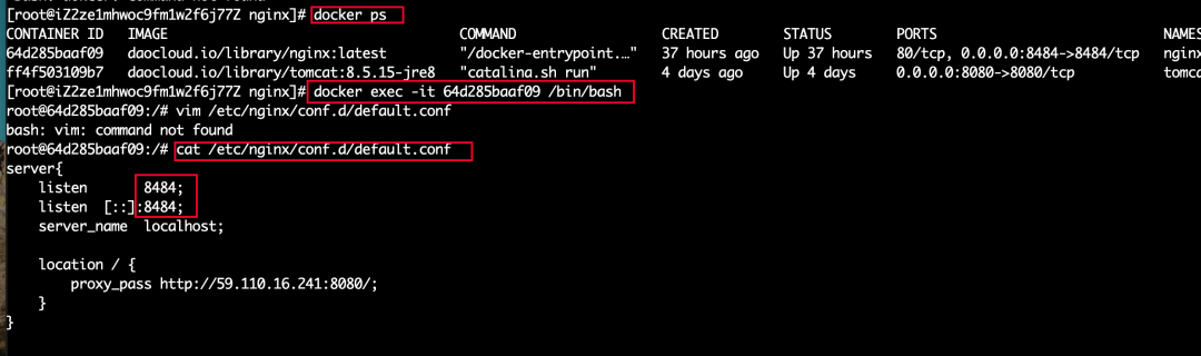 这时候,还需要进入容器内部,修改容器内的默认端口80.