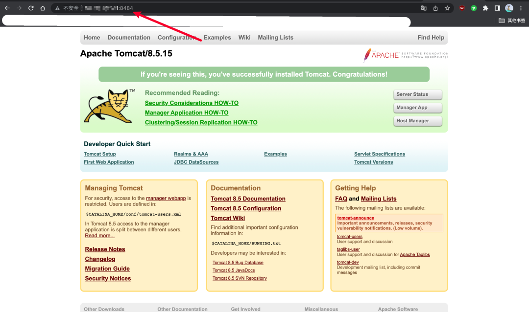 这时候再次访问nginx主页http://ip:8484/,(如果你前面location配置了location /index 就访问http://ip:8484/index,)他就转发到tomcat的8080服务上,因为隐藏了真实服务器的地址(8080),这个就叫做反代理,是不是很简单?