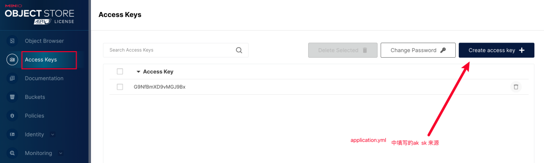 推荐使用ak/sk这种方式配置, 用这个生成的ak/sk是没有办法登录后台的,假设公司有很多服务使用minIO,每个服务都有自己的桶,系统开发者需要向MiniO管理员申请一个专用的ak/sk.毕竟不是开发人员多了的话,不是谁都能登录后台管理系统的.