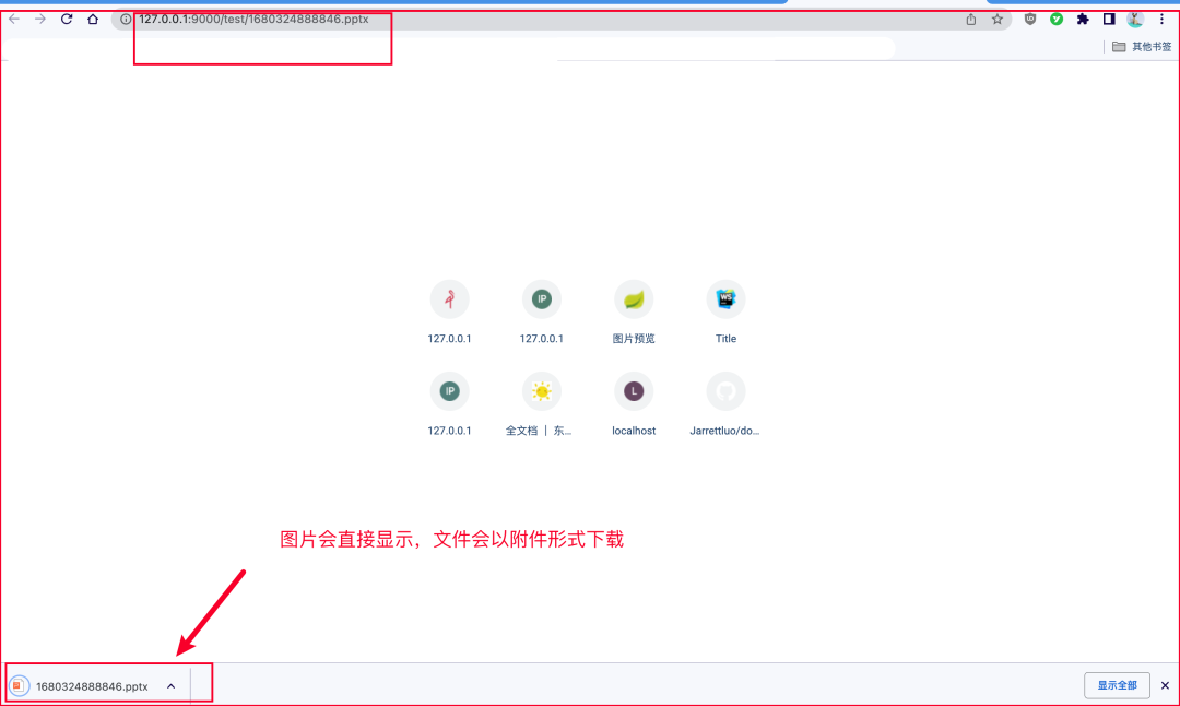 如果文件是图片,则会直接预览,如果是文件例如(ppt/视频/word等)则会以附件形式下载.