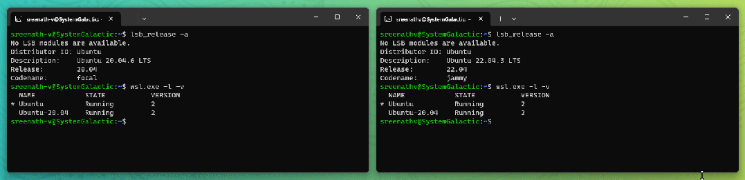 如果你在另一个发行版中,请使用以下命令列出系统上安装的所有 WSL 发行版: