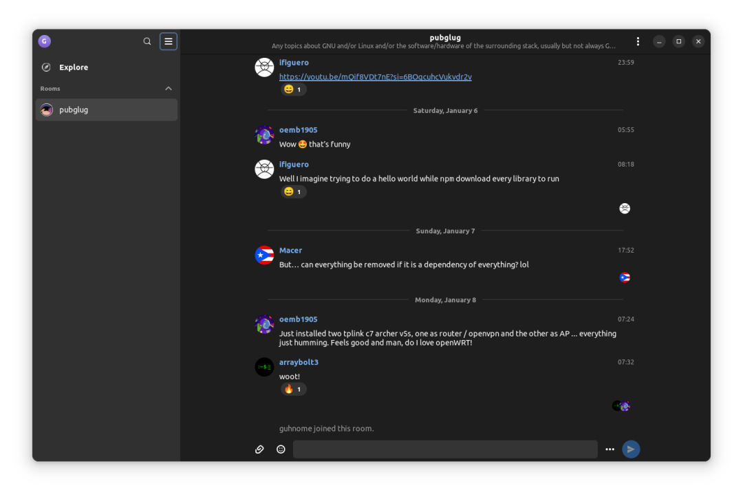 既然谈到了这个话题,那么现在就可以用 Fractal 打开 Matrix URI 了**。它也是**Matrix 方案的注册处理程序。如果你不知道,URI 是一种标识符,可以让你轻松与其他用户取得联系或加入房间,类似于 Telegram 等平台上的标识符。