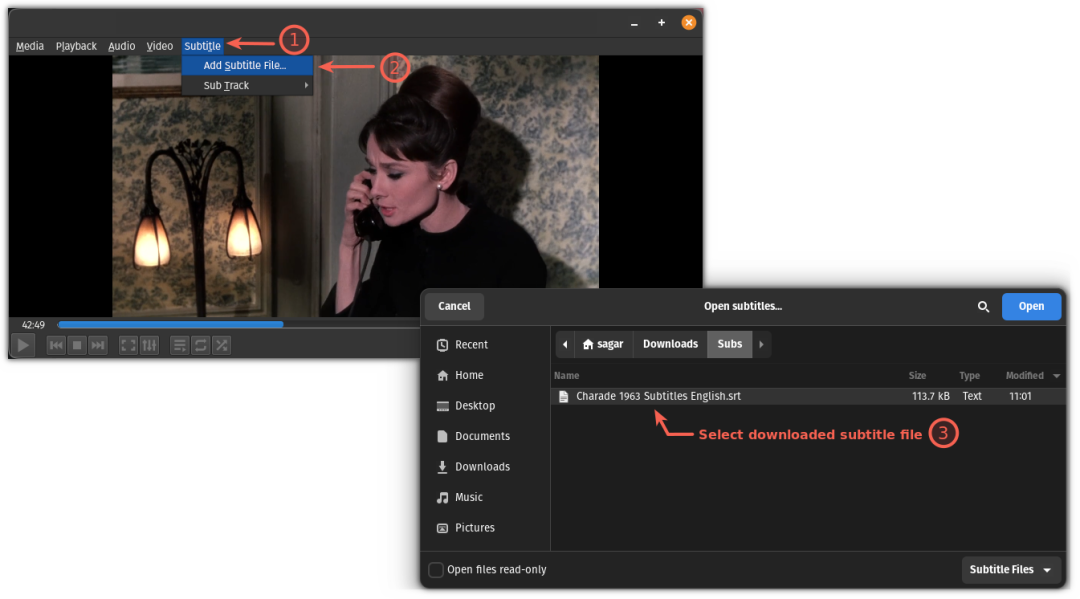 如果你从网上下载了字幕,但不知道如何在 VLC 中使用它们,那么本节将解决该问题。