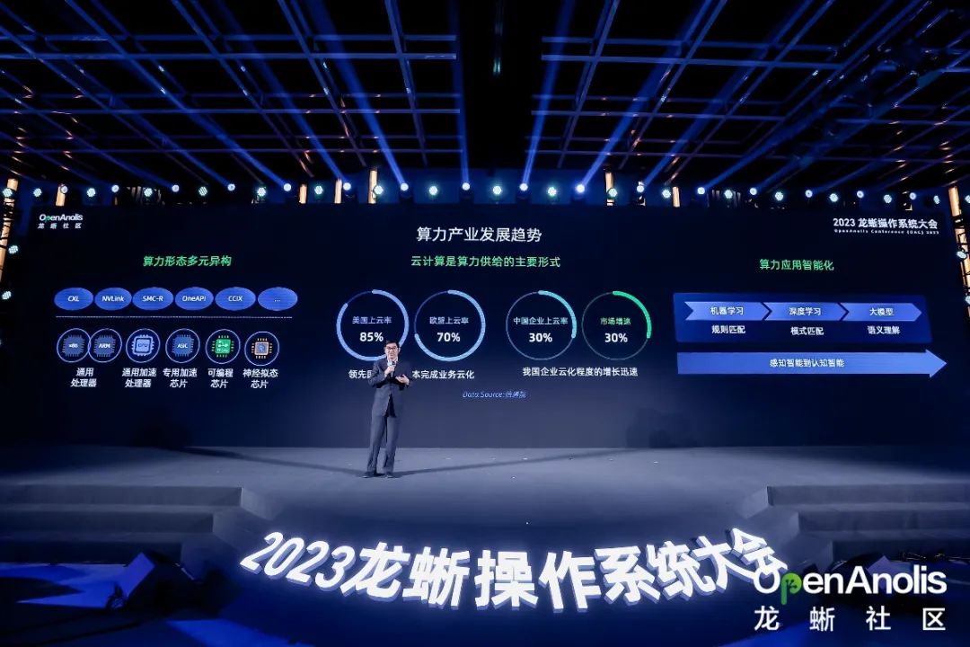 此外,龙蜥还起着推动 AI 和云融合的关键作用,成为了拥抱智能计算时代的重要支撑和技术抓手,在此次大会上龙蜥隆重发布了下一代操作系统“1+3”能力模型,以便更全面地支持 AI 和云计算的发展。