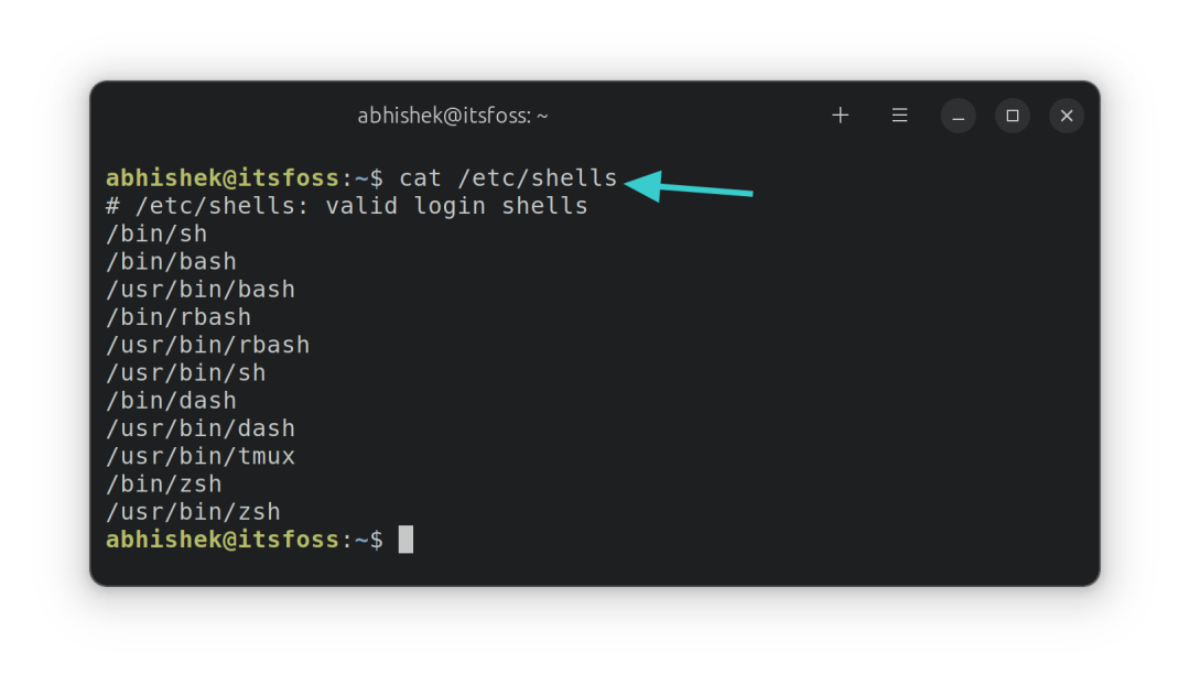 文件的内容显示了所有可用 Shell 的二进制文件位置。你需要将它与 chsh 命令一起使用。