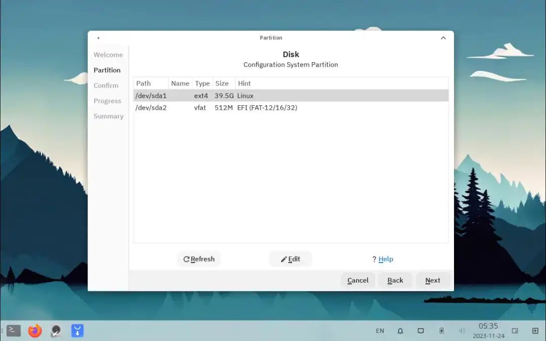 安装程序还给出了关于分区的有效提示,将较大的一个标记为 Linux