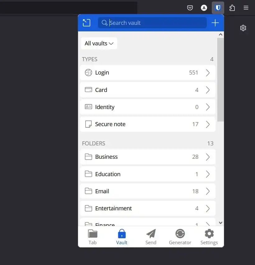 Bitwarden 是一款强大、跨平台的密码管理器,涵盖了桌面应用程序和浏览器扩展。它与 KeePass 不同的之处在于,Bitwarden 依赖云端进行密码的加密和存储,大大提高了在多终端之间同步数据的便捷性。