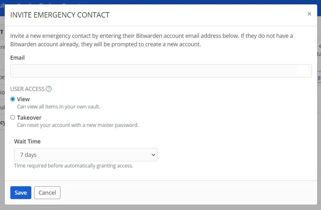 因为密码管理器储存了你所有的登录信息,它就是一个包含 所有你的访问密钥 的地方。你可以设置紧急访问功能,以方便你信任的朋友或者家庭成员在你不幸出现紧急状况后访问你的密码。