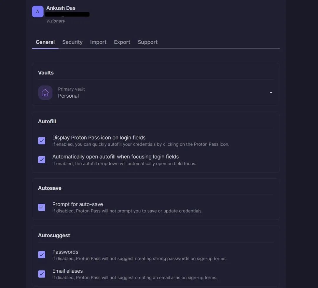 使用 Proton Pass 还可以获得基本的 导入/导出,控制某些安全措施,修改密码管理器行为 的功能。