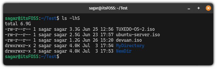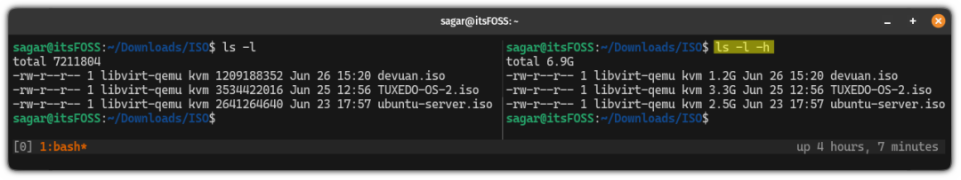 $ ls -lh-rwxrw-r-- 1 sagar sagar 666M Dec 10 18:16 Fedora.iso