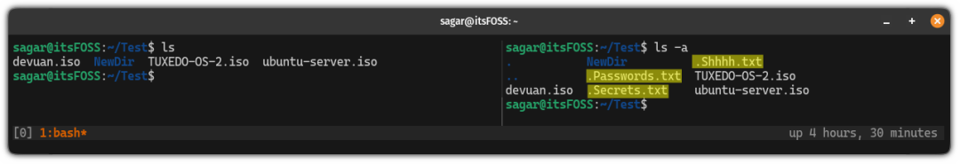 那么,如果你期望在常规文件之外,一并 列出隐藏文件 呢?只需在使用 ls