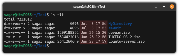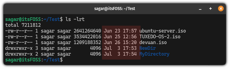 这会使得最近修改的文件在列表的底部显示,当目录中存在大量文件,而你希望查看最近被修改过的文件时,这一命令会特别有用。我在解决我的软件项目问题时就经常用到它。