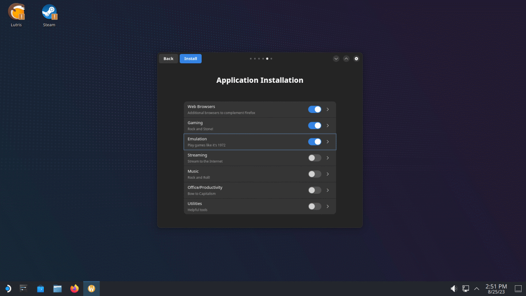 我在 虚拟机 上尝试了 Bazzite,发现其安装体验极其接近 Fedora。但在安装过后,你会发现它的独特之处。