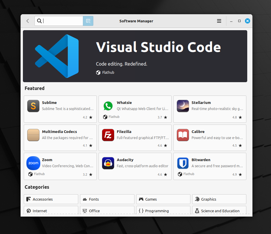 同样,我们现在也有了全面改版的软件包管理器,我们在 Linux Mint 21.2 版本中首次看到了它,现在它又出现在了 LMDE 6 中。
