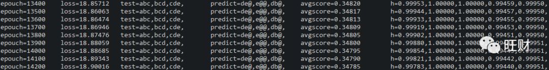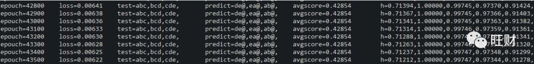 实验中我设置xyz是干扰项,固定模式有三种:”abc-de”, “bcd-ea”, “cde-ab”,eos符号是”@”