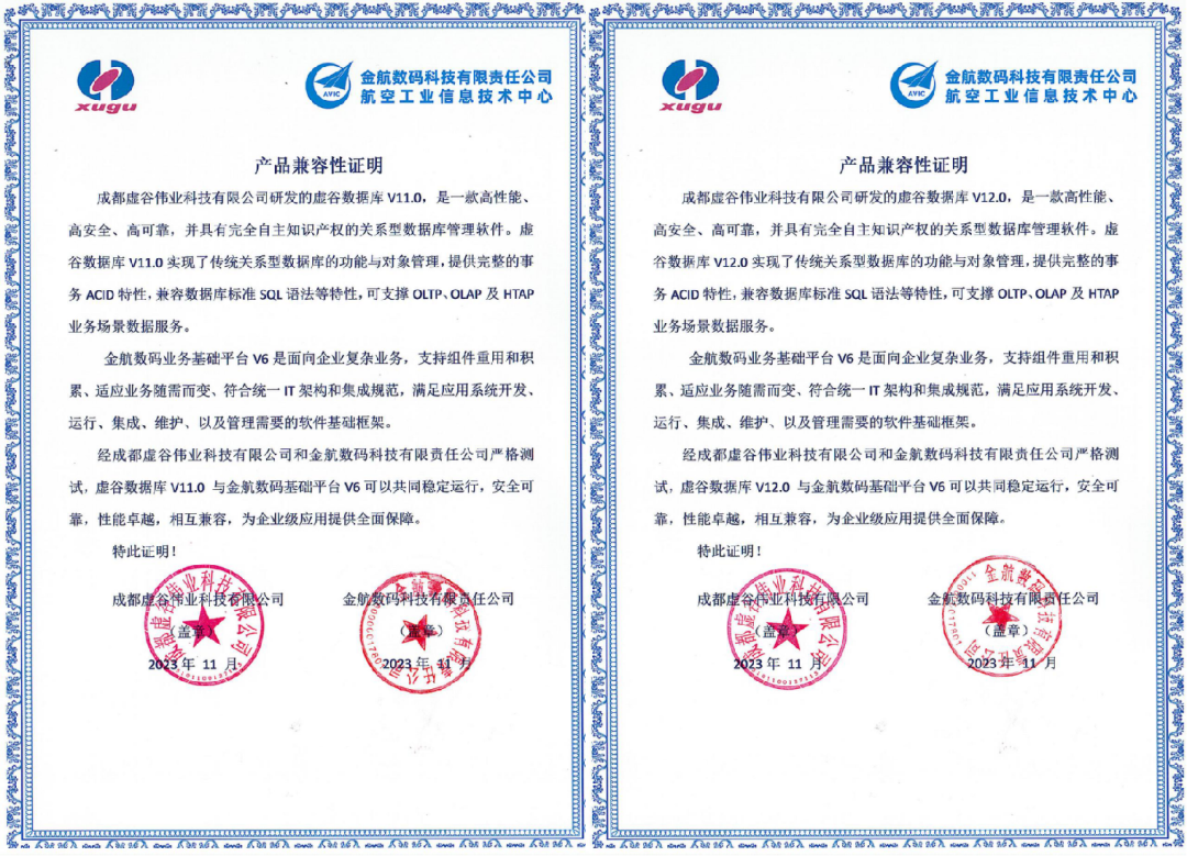 结果表明,虚谷旗下的虚谷数据库V11.0、V12.0与金航数码旗下的金航数码基础平台V6适配成功,双方产品相互兼容良好体验良好,系统功能运行稳定,满足了用户功能、性能和可靠性要求,可为企业级应用提供全面的数据服务及安全保障。