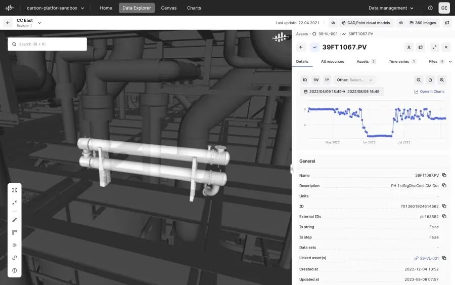 ⇲ 可处理工业(OT)数据类型、工程图、管道和仪表图(P&ID)、3D 数据(例如计算机辅助设计(CAD)、点云和摄影测量)以及大规模和高频率时间序列数据。