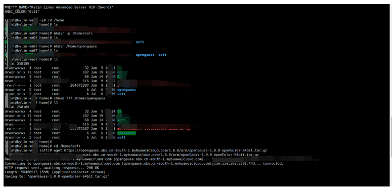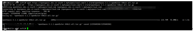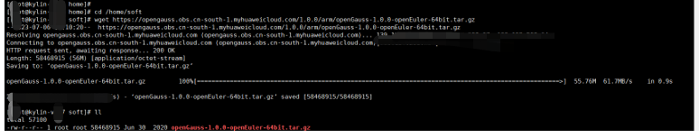 进入软件安装包文件路径,下载openGauss安装包(根据实际需要,选择不同的版本:openGauss 1 || openGauss2 || openGauss3)
