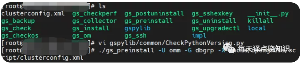 接下来,就是初始化安装环境:执行gs_preinstall,
