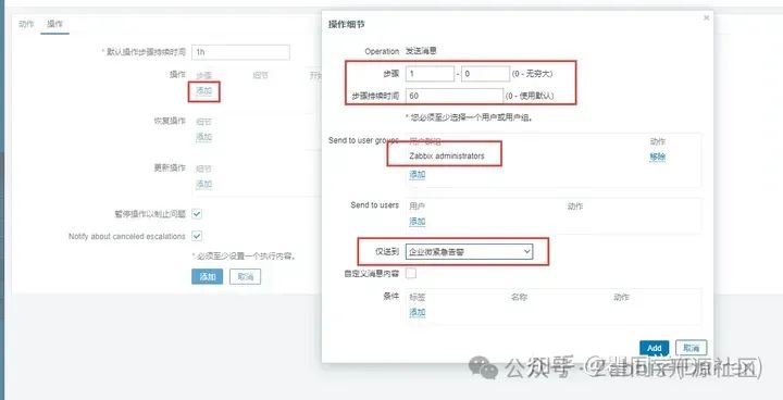 设置操作为紧急告警,告警周期缩短至每60秒一次