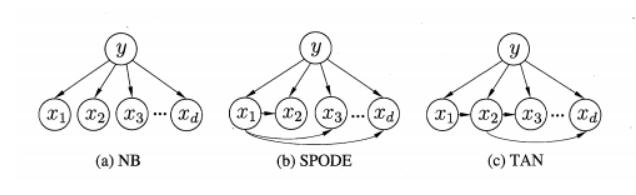 2.TAN方法。每个属性依赖的另外的属性由最大带权生成树来确定。