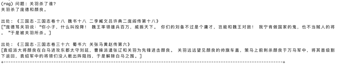 现在,我们就可以产生出一个能够初步符合预期的 RAG 系统了,这个 RAG 能够捕捉到细粒度的相关性高的史料,并且可以准确地引用其对应出处。同时更强的 LLM 模型也可以从繁杂的史料片段中提取到对问题回答有帮助的知识。