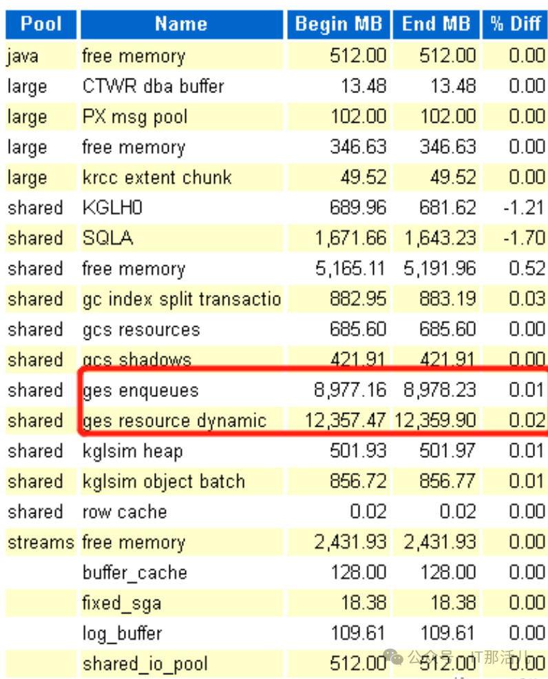 数据库由于shared pool中ges resource dynamic和ges enqueues占用内存过多,shared pool不够用引起ora-4031和sga resize,进而影响了数据库整体性能。