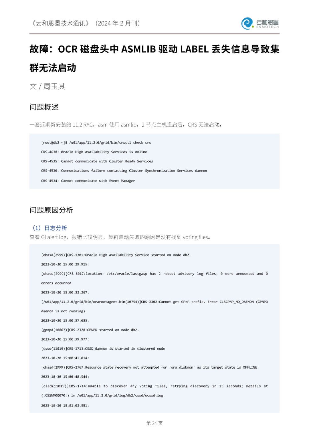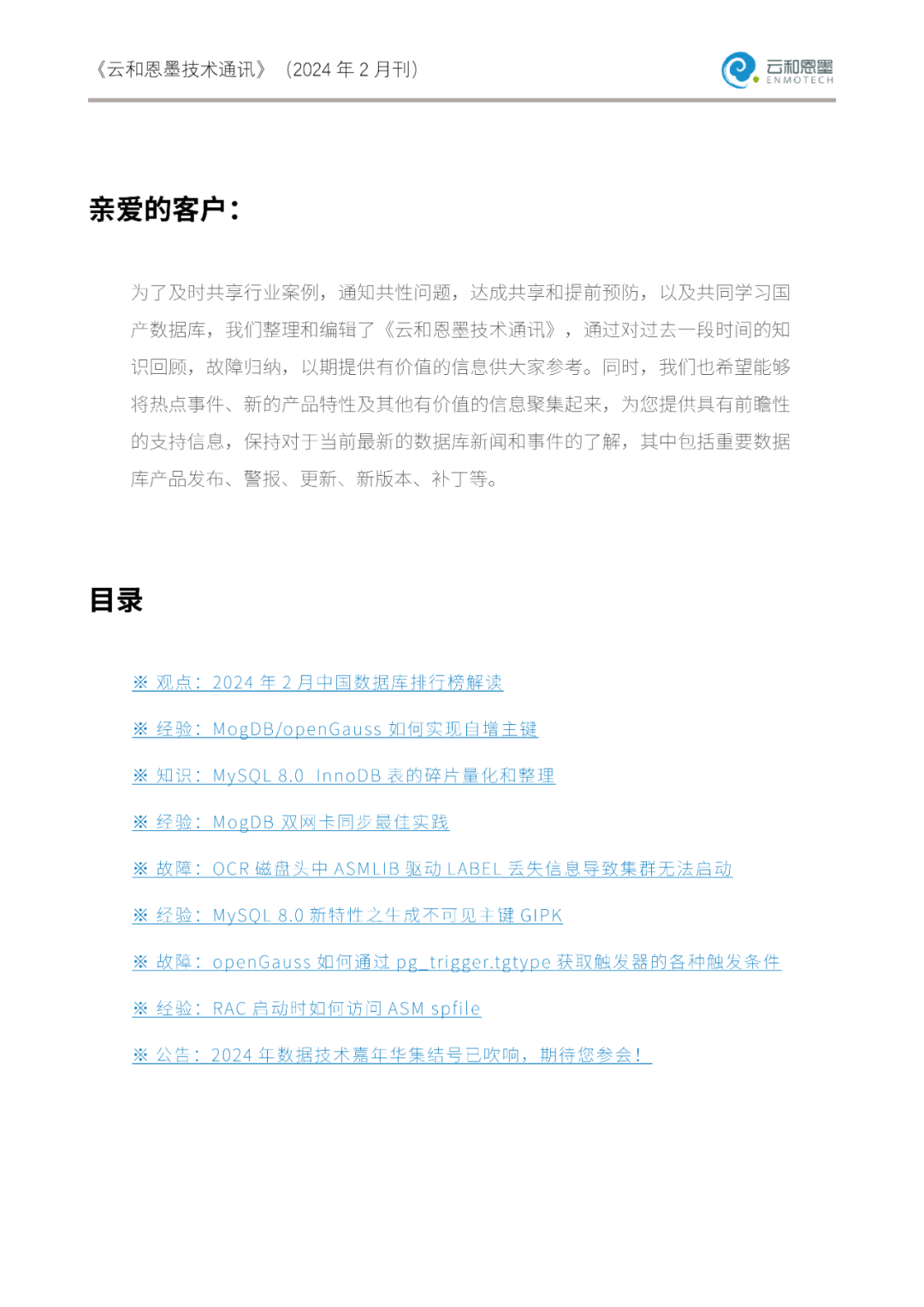 点击这里,查看本期完整内容。关注云和恩墨公众号,回复“技术通讯”,阅览往期更多干货。