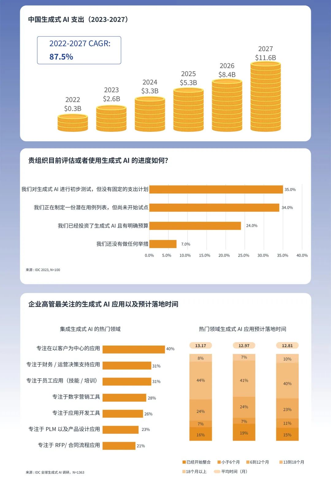 24%的企业已经开始投资生成式 AI,并且有相应的预算计划,近70%的企业还没有固定支出计划或尚未开始试点。