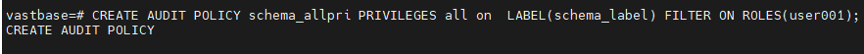 (3) 基于资源标签创建审计策略(user001用户针对该模式的PRIVILEGES操作)