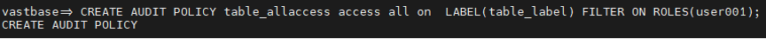 CREATE AUDIT POLICY [ IF NOT EXISTS ] policy_name { { privilege_audit_clause | access_audit_clause } [ filter_group_clause ] [ ENABLE | DISABLE ] };