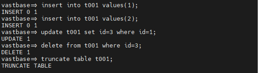 DML:指的是针对数据库执行如下操作时进行审计,目前支持:SELECT、COPY、DEALLOCATE、DELETE、EXECUTE、INSERT、PREPARE、REINDEX、TRUNCATE、UPDATE;