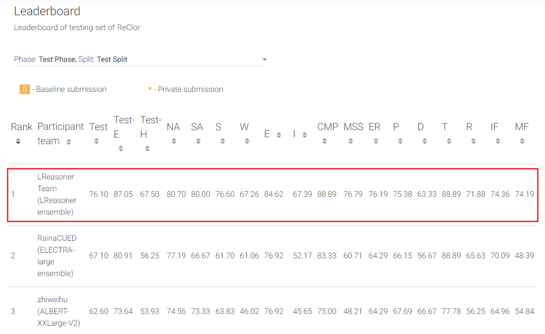 图1:LReasoner 系统在数据集 ReClor 官方排行榜上目前位列第一